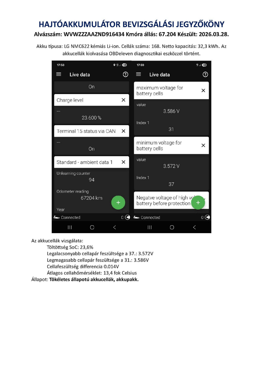 Nagy akksis (36,8 kWh) modell, bevizsgált akkuval, 2 gyári kulccsal, 2 töltőkábellel (230V gyári otthoni és Type2 utcai), rengeteg extrával eladó ez a 2021.12. havi 67.204 km-t futott autó. Alapfelszereltség feletti extrák: metálfényezés, elektromosan állítható és fűthető tükrök, bőr multifunkciós kormány, 15 collos prémium gyári széles felnik, tempomat, télicsomag: dupla ülésfűtés+szélvédőfűtés, kék ledcsík műszarfalon végig, shark műszerfal betét, prémium üléskárpitok elöl-hátul, prémium hangszórók (6 db), jobb oldali ülésmagasség állítás, DC (villám)töltési CCS port.