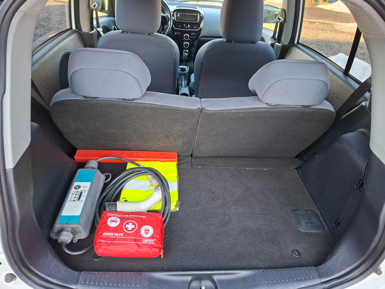 Alapfelszereltség: ülésfűtés, 2 db kulcs, távirányítós központi zár, motorosan állítható-behajló-fűthető tükrök, 4 elektromos ablak, állítható magasságú vezetőülés, bőrkormány, 6 légzsák, ISOFIX gyermekülésrögzítők, 4 csillagos törésteszt, automata klíma/fűtés, bluetooth kihangosítás, Kenwood CD-MP3-rádió, állítható otthoni töltőkábel (8/14A), ABS, vészfékrásegítő, elektronikus fékerőelosztó, kipörgésgátló, menetstabilizáló, gyári könnyűfém keréktárcsák, nappali menetfény, automata projektoros lámpa, ködfényszórók, villámtöltési lehetőség (Chademo), magyar nyelvű kezelési útmutató.